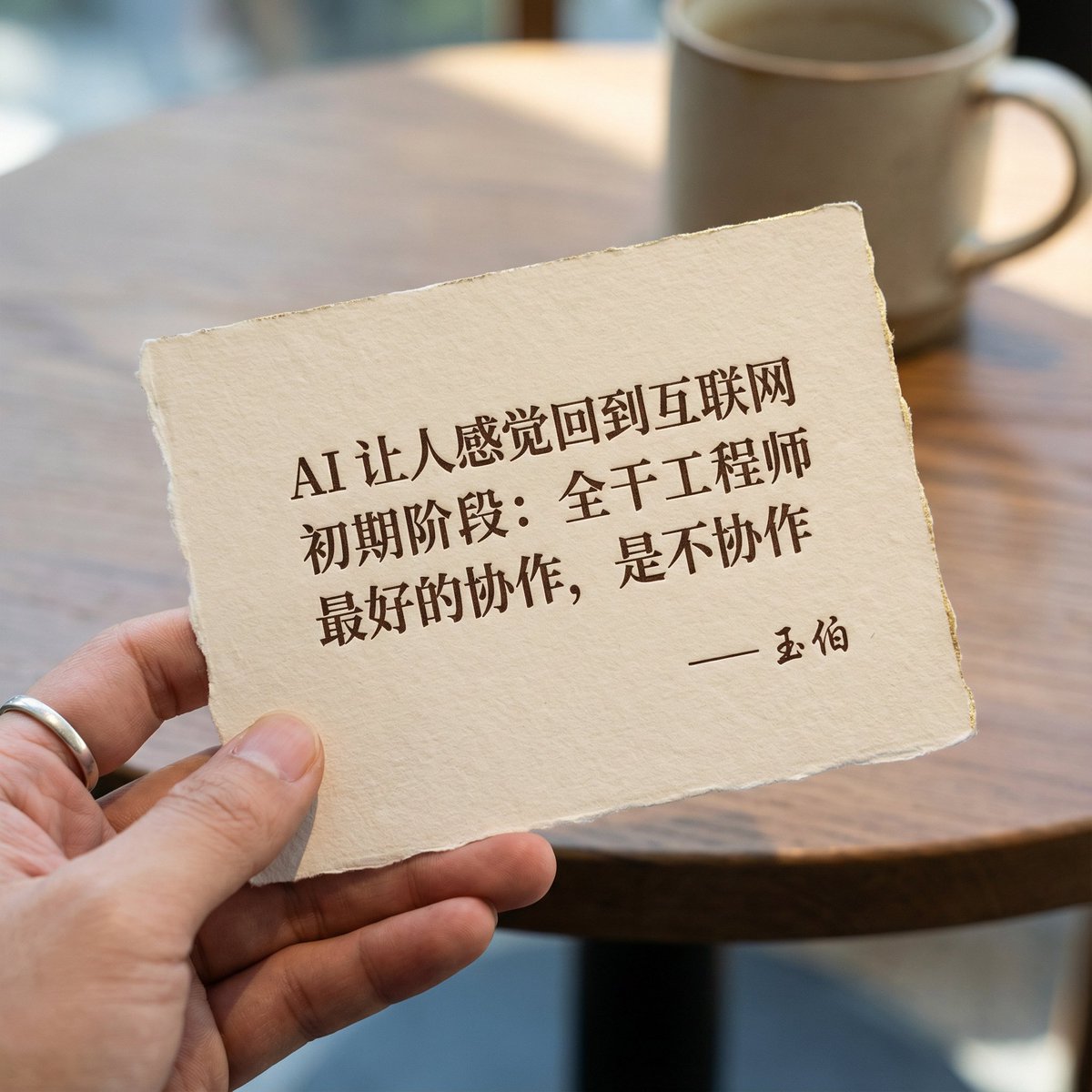 Dans le groupe de Wen, on discutait des raisons pour lesquelles la tendance actuelle chez les ingénieurs est au développement full-stack. Pourquoi est-il possible de réaliser une intégration organisationnelle de bout en bout aujourd'hui ? Il y a 10 ans, il y a 3 ans, était-ce parce qu'ils ne pouvaient pas ou ne voulaient pas, ou parce qu'ils ne s'y attendaient pas ? Yu Bo a déclaré que l'IA permet aux individus d'accomplir de nombreuses tâches de manière indépendante, éliminant ainsi le besoin de collaboration. La meilleure collaboration est l'absence totale de collaboration.