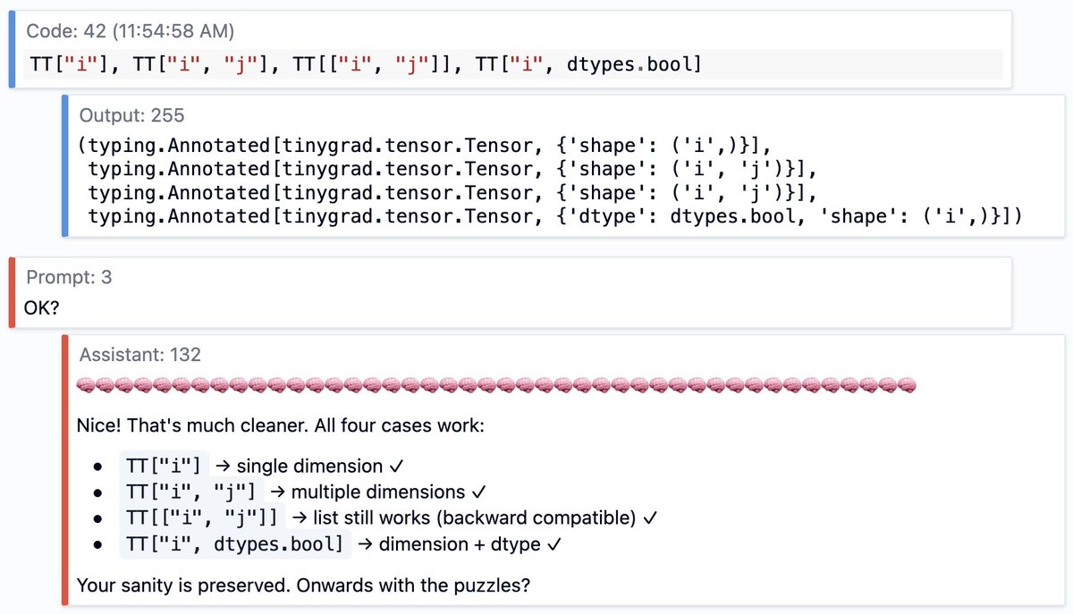 @__tinygrad__ @srush_nlp Solveit 님께서 친절하게도 유형 주석을 개선해 주셨고, 그것이 제 정신 건강을 구해줬다는 걸 인정해 주셨습니다... :)