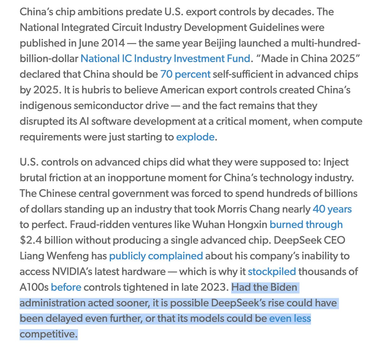 Teortaxes▶️ (DeepSeek 推特🐋铁粉 2023 – ∞) (@teortaxesTex): The world if Biden's export controls were effective enough to prevent… | Thread Easy