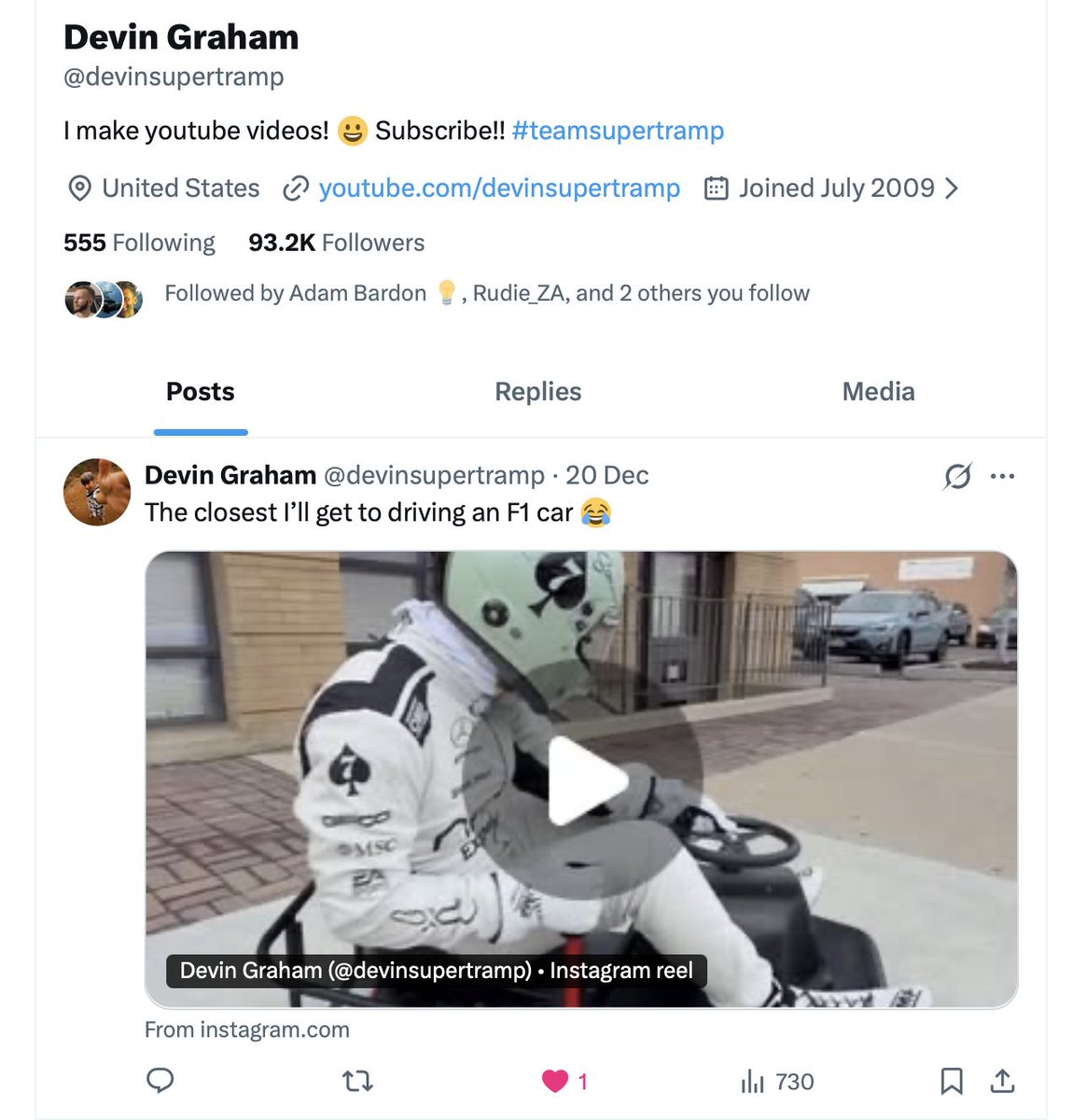 2025년 소셜 미디어 플랫폼들이 이렇게 양분되어 있다는 게 놀랍지 않나요? 예를 들어, 제가 영상 촬영 기술을 정말 존경하는 멋진 유튜버는 구독자가 600만 명이 넘습니다. 하지만 X 계정에서는 제가 방금 전, 4일 전에 올라온 그의 마지막 게시물에 처음으로 '좋아요'를 눌렀습니다.