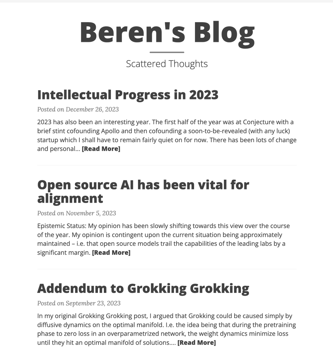 More people must know Beren. I admire him a lot. He's been a voice of reason during peak AI Doom era, and after some mathematically rigorous blog posts countering Paperclip-type narrative, he founded Zyphra to contribute to AI transparency and decentralization of power. Great man
