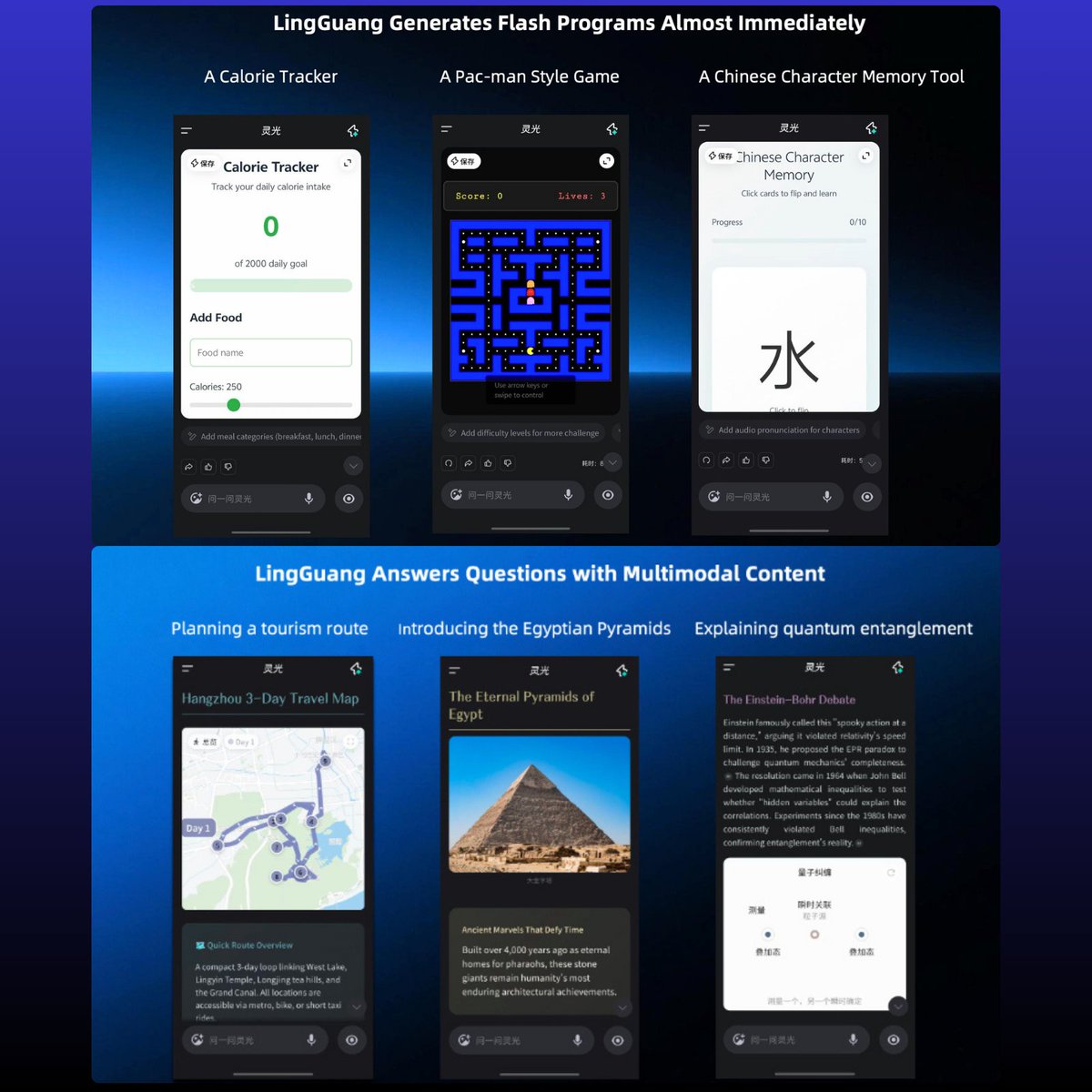 LingGuang might be one of the more interesting launches out of China this month. It is an AI you can build with, not just talk to. A simple prompt can turn into a working interactive app in under a minute. It creates visuals, logic, UI and even small flash programs. Think of Gemini’s multimodal approach, but with a focus on building things for you. The demo shows it generating 3D models, charts, maps, animations and custom tools using natural language. Ant Group calls it a genie programmer in your pocket, and that description fits the direction they are taking. What stands out for developers and creators: • fast multimodal outputs for research • natural language app building • 3D, audio, maps and visual responses • an AGI camera that understands scenes in real time For more context on how it compares to Gemini, here is a detailed breakdown: https://t.co/Z6iVoFPXf2 #AI #AntGroup