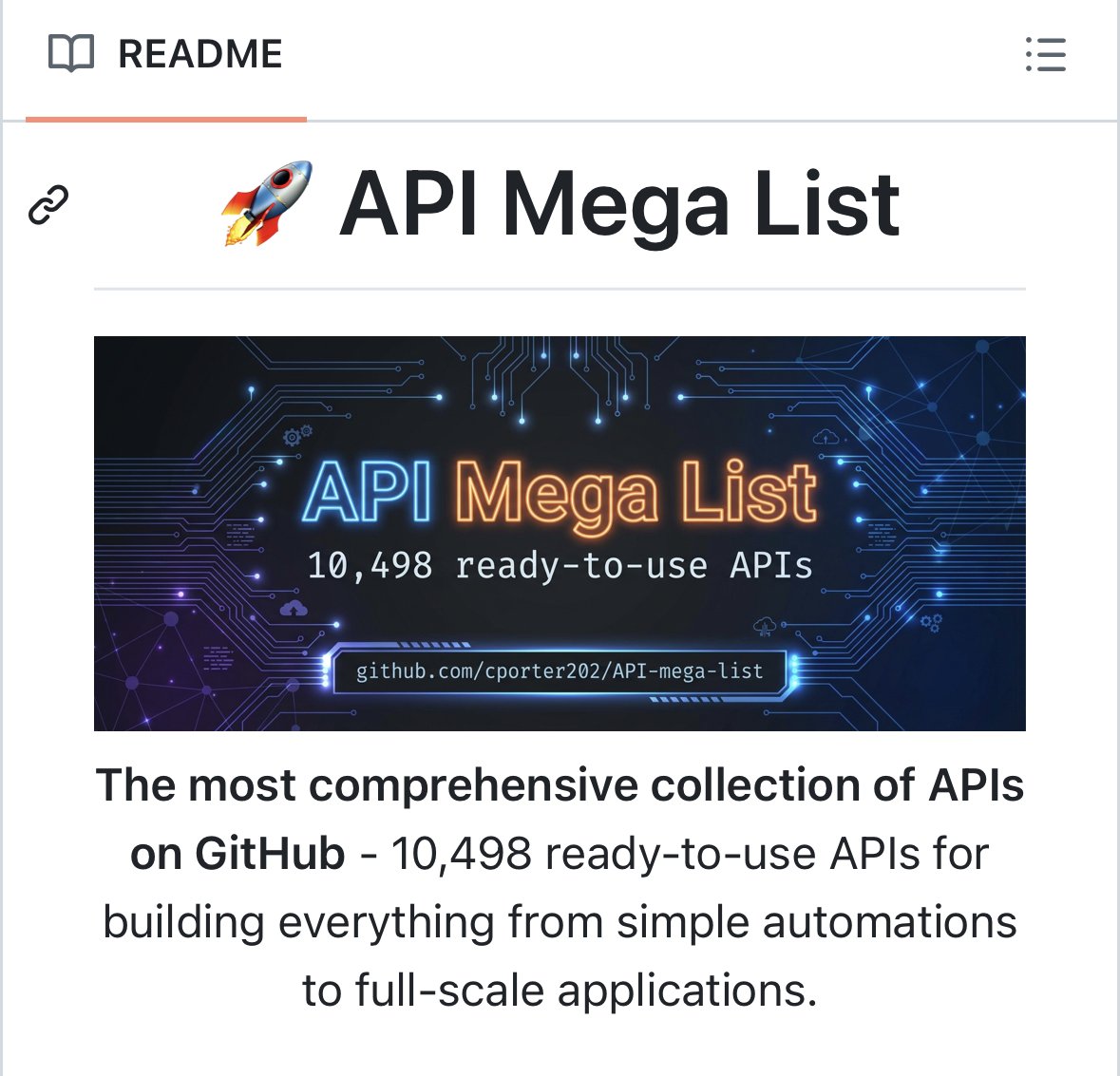 This github repo is a powerhouse collection of apis you can start using immediately to build everything from simple automations to full-scale applications.