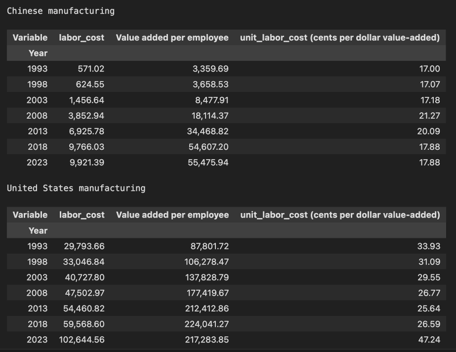 "manufacturing labour cost" meme is one of those things that separate thinking people and… not thinking people. The latter are a majority. The former ask "well, OK, but how much do they produce for that cost?" and it turns out that it's still $5,5 of goods per $1 of labor.