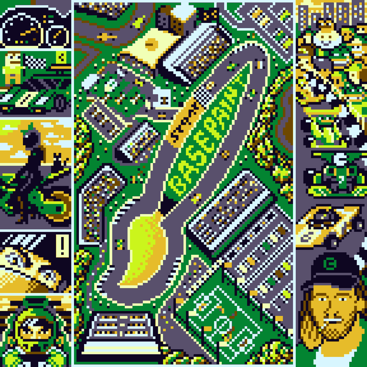 我在@base上最喜歡的遊戲一直是@sammybauch的@speedtracergame。 我真的玩到手指都抽筋了。它有種《Flappy Bird》的勁頭。全神貫注,節奏感十足。 所以我知道我想創作一幅向索拉納致敬的作品。