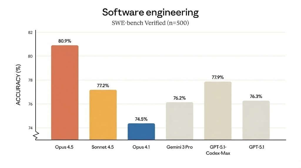 Anthropic 的营销驱动型数据可视化大师之作:纵轴“准确率 (%)”的起始点不是 0,而是 70。一个小小的断点符号保持了技术上的严谨性,但视觉冲击力却非常强大。妙哉!
