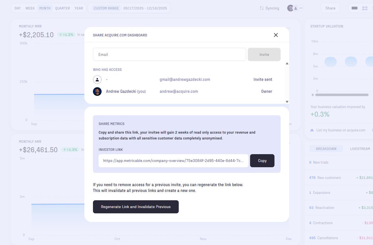 Andrew Gazdecki (@agazdecki): New @metricablecom feature: Share your revenue metrics with anyone yo… | Thread Easy