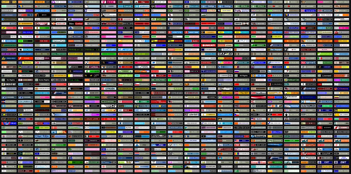 我刚在一个旧硬盘里找到了 4574 个 2000 年代初期的小型侧边栏按钮,已全部重新上传。 那时候的网络感觉就像一个个社区,而不是信息流。