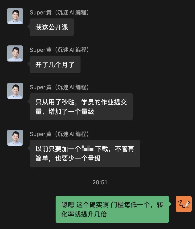 年初的時候,我報名了Super黃的線下的小白AI 程式設計課。 那次體驗是我第一次在線下觀察普通人使用AI 進行程式設計。 而讓我最震撼的不是AI 能力有多強,而是一般人使用AI 的門檻有多高。 我還記得,那次課我們的練習題目是一個表情符號產生器。 同學們在用上Cursor 之前,一步一步做各種設定電腦,就花了一小時。 最後VIbe Coding 結束了,要部署到Cloudflare,又要折騰一小時。 那天從下午2點開始,到晚上8點才結束,嚴重的超時。 有位同學讓我印像很深刻,她的作業很好,但最後死活部署不上去。 那種努力一天的成果,卻無處安放的痛苦,至今讓我歷歷在目。 AI 要進入普羅大眾,最後一公里,往往最難。 儘管是線下手把手的教,普及AI 編程,依然是很難很難。 讓我很驚訝的是,今年的AI 發展真的太快了,就半年多的時間,這一切都得到了完美的解決。 最近和黃叔聊天,他感慨萬千,說現在學員的交作業率增加了一個數量級。 年初門檻很高,年底沒了門檻。 小白的上手速度,是AI 發展的另一個標尺。 黃叔和AJ 跟我安利秒噠不是一次兩次了,我也很好奇最近秒噠是不是已經真的做到新手小白無門檻使用了,於是今天就用它做了三個網站。 這三個網站都能成功做出來了,是非常出乎我意料的。 更意外的是,這三個網站加起來,總共只花了3 塊,就一瓶可樂的錢。