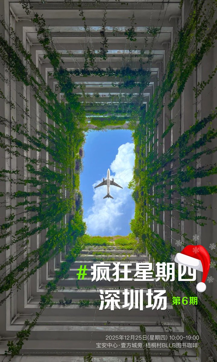 📢 活動預告:#瘋狂星期四深圳場第6期,下週四見! 🎄 12月25日,十二月最後一個星期四,剛好是聖誕節,每個月一次,2025年的最後一期來啦。 ☕️ 讓我們繼續相聚世外桃源- BLLB圖書咖啡,這裡大隱於市,青山綠水,湖光天鵝,靜謐宜人!深圳的創造者們,一起來聚聚吧~ 主題?這裡沒有主題,大家可以自由發揮,一起喝喝咖啡、聊聊搞錢、遠距辦公、發呆放空,網友面基,主打一個Chill~ - 本期時間:2025年12月25日(星期四) 10:00~19:00 - 活動地點:寶安中心·壹方城旁·梧桐村BLLB圖書咖啡(寶中地鐵F口) - 如何參加:無需報名,隨時來吧 更多細節: - 環境:舒適空調,寬敞桌椅,湖邊露營 - 地鐵:寶安中心地鐵站- 步行至泰華梧桐村 - 電網:店內插座和WiFi - 停車:地下停車場 往期回顧: 第1期:https://t.co/Of7Iy3Mjp5 第2期:https://t.co/0MKFLbEgEX 地址相關連結: 大眾評論:https://t.co/8fyP7EYLq8 小紅書: