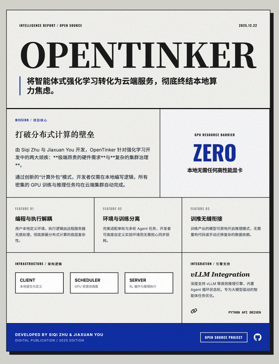 meng shao (@shao__meng): [开源推荐] OpenTinker: 把智能体式强化学习作为服务,让更多研究者和开发者能够轻松进行强化学习的训练和推理,而无需本地拥有高性… | Thread Easy