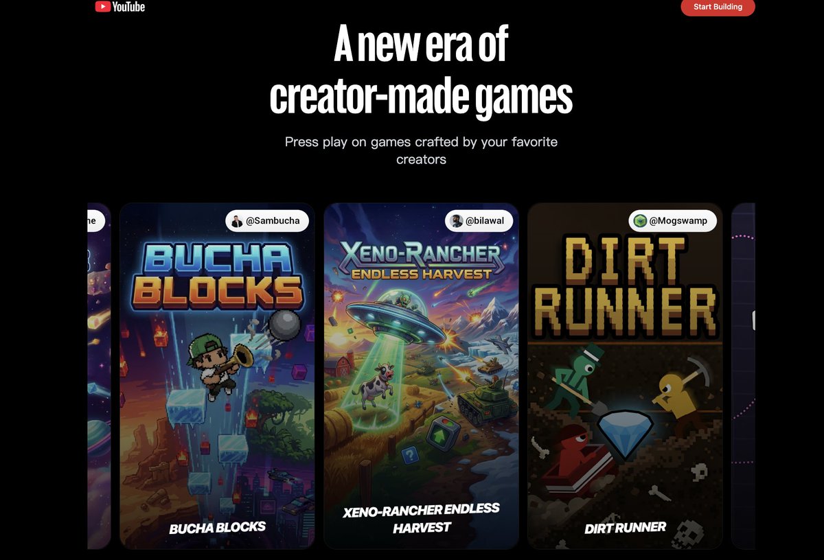 YouTube搞的零代碼小遊戲工具:Playables Builder,也就是說除了視頻,用戶還可以「上傳」遊戲到YouTube了 Playables Builder基於Gemini 3,一句話、一張圖或扔一段視頻,即可生成可玩的輕量級小遊戲 生成後可直接掛在YouTube,觀眾不需下載點進去就能玩 這或許會催生出一個「遊戲短片」新賽道,出現一批專做小遊戲的MCN #YouTubePlayablesBuilder #AI小遊戲